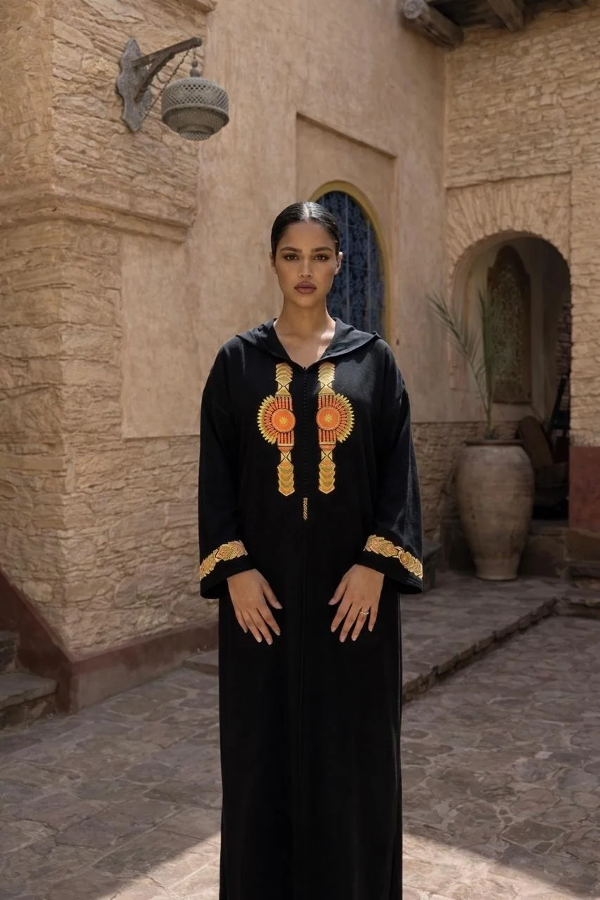 Jellaba élégante ornée de Tarez traditionnel, confectionnée dans un tissu en crêpe de haute qualité